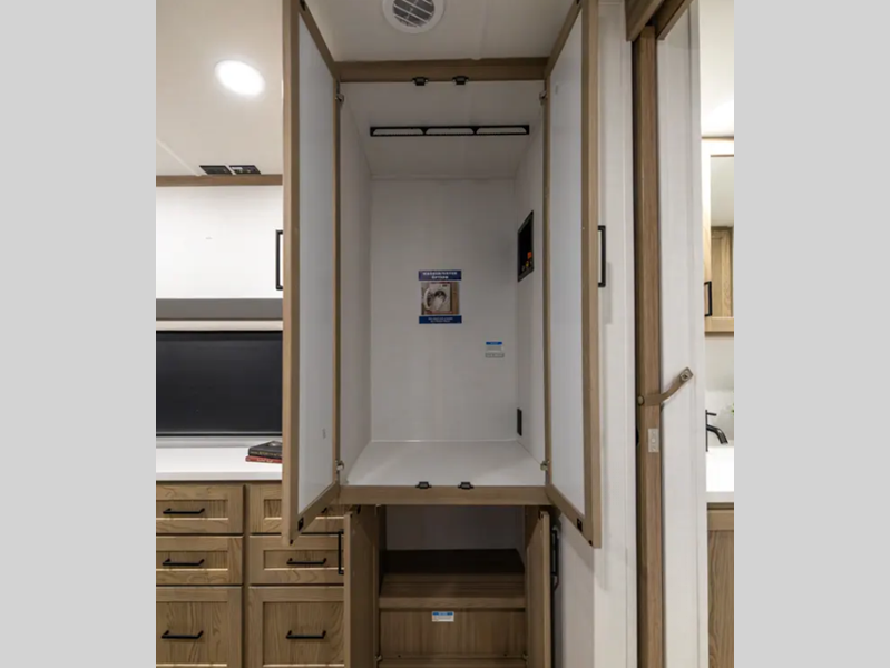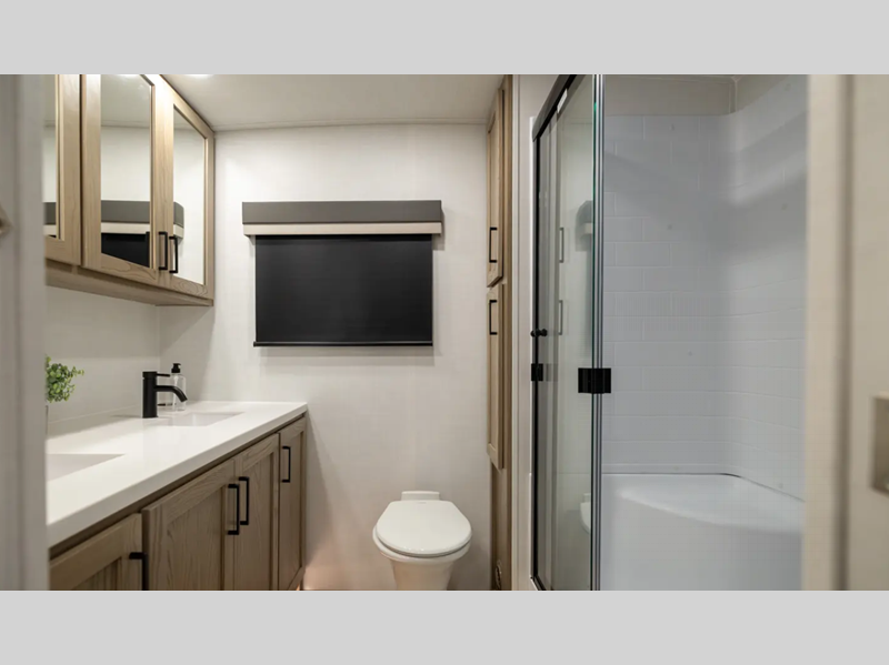 Sleeps 2 Slides 2 Length 29 ft 11 in Ext Width 8 ft Ext Height 11 ft 7 in Hitch Weight 1010 lbs Dry Weight 7649 lbs Cargo Capacity 2161 lbs Fresh Water Capacity 54 gals Grey Water Capacity 78 gals Black Water Capacity 39 gals Furnace BTU 35000 btu Available Beds King Refrigerator Type 12V Cooktop Burners 3 Number of Awnings 1 LP Tank Capacity 30 lbs Water Heater Capacity 6 gal Water Heater Type Quick Recovery Gas/Electric TV Info LR Smart TV Awning Info 22' Power w/Adjustable Rain Dump & LED Lights Axle Count 2 Number of LP Tanks 2 Shower Type Shower w/Seat Electrical Service 50 amp Similar Floorplans