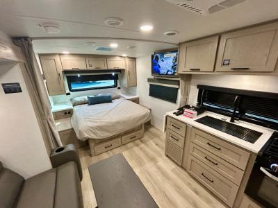 Sleeps 3 Slides 1 Length 22 ft 4 in Ext Width 8 ft Ext Height 10 ft 3 in Hitch Weight 557 lbs Dry Weight 4493 lbs Cargo Capacity 1344 lbs Fresh Water Capacity 54 gals Grey Water Capacity 29 gals Black Water Capacity 29 gals Furnace BTU 20000 btu Available Beds RV Queen Refrigerator Type 12V Cooktop Burners 3 Number of Awnings 1 LP Tank Capacity 30 lbs Water Heater Type Gas/Electric with Quick Recovery AC BTU 15000 btu TV Info LR 12V Smart Entertainment TV Awning Info 14' Power with Adjustable Rain Dump and LED Lights Axle Count 2 Number of LP Tanks 2 Shower Type Radius Similar Travel Trailer Floorplans