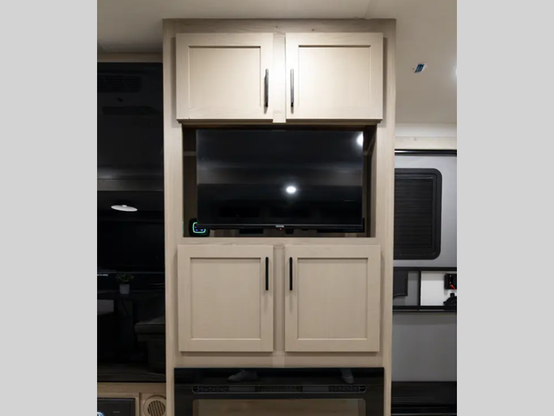 Sleeps 8 Slides 1 Length 32 ft 10 in Ext Width 8 ft Ext Height 11 ft 2 in Hitch Weight 790 lbs Dry Weight 7059 lbs Cargo Capacity 1531 lbs Fresh Water Capacity 54 gals Grey Water Capacity 90 gals Black Water Capacity 45 gals Furnace BTU 35000 btu Number Of Bunks 2 Available Beds Queen Refrigerator Type 12V Cooktop Burners 3 Number of Awnings 1 LP Tank Capacity 20 lbs Water Heater Capacity 6 gal Water Heater Type Quick Recovery Gas/Electric AC BTU 15000 btu TV Info LR Smart TV Awning Info 24' 6" Power w/Adjustable Rain Dump & LED Lights Axle Count 2 Number of LP Tanks 2 Shower Type Standard Electrical Service 50 amp Similar Floorplans