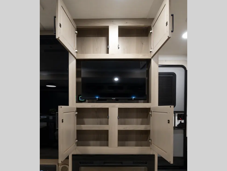 Each is built with 6-sided aluminum cage construction, a fully laminated walkable roof, and aluminum truss roof bracing for added support. You will love the standard features such as, a 200W solar panel, a Key-Alike lock system, and a Winegard Air 360+ prepped for Wi-Fi. The Coast to Coast Package includes amenities that will make you feel right at home including, solid surface kitchen countertops, roller shades, and soft close roller bearing drawers.